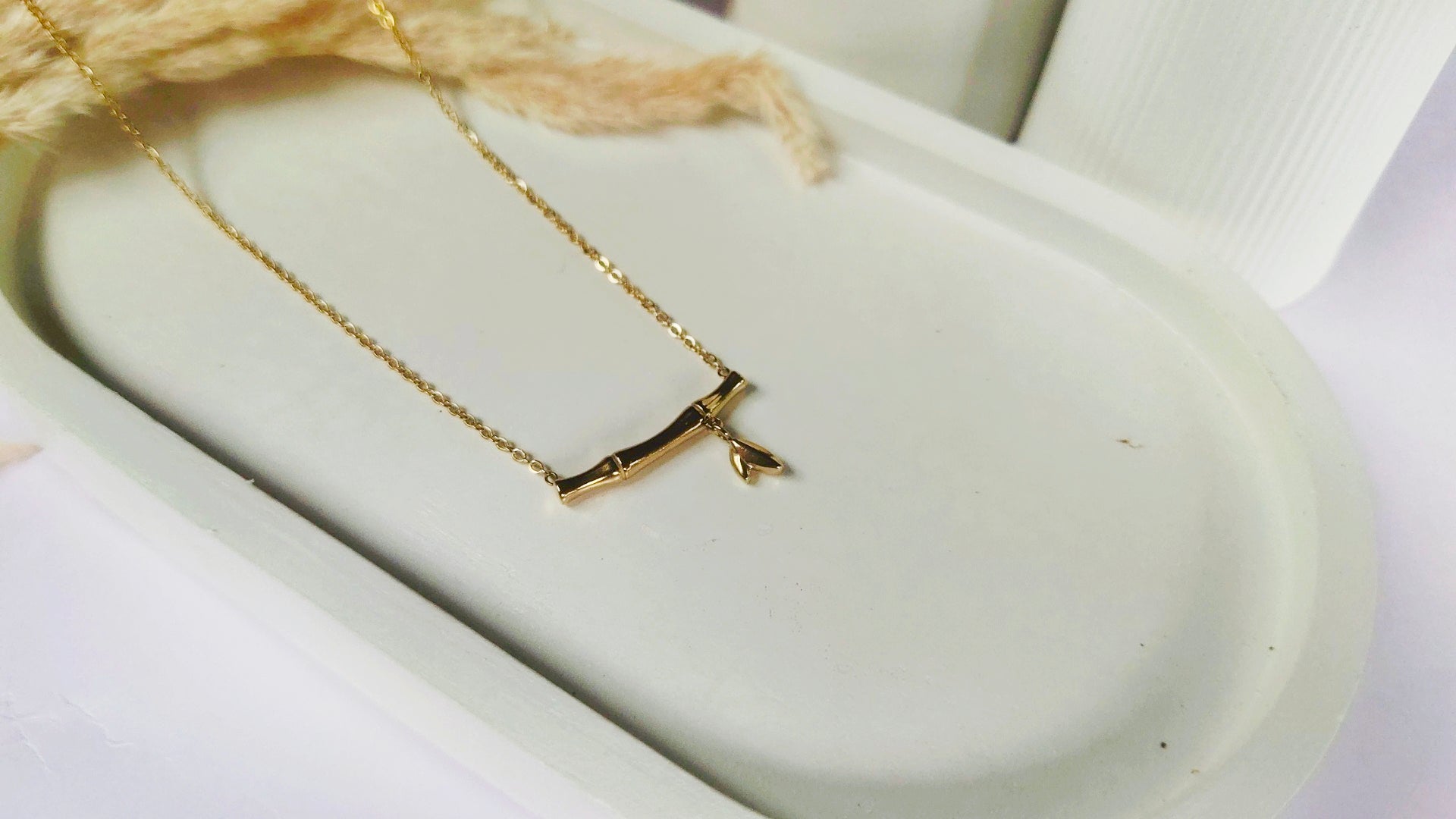 • Elegant bamboo-inspired bar pendant with a delicate charm