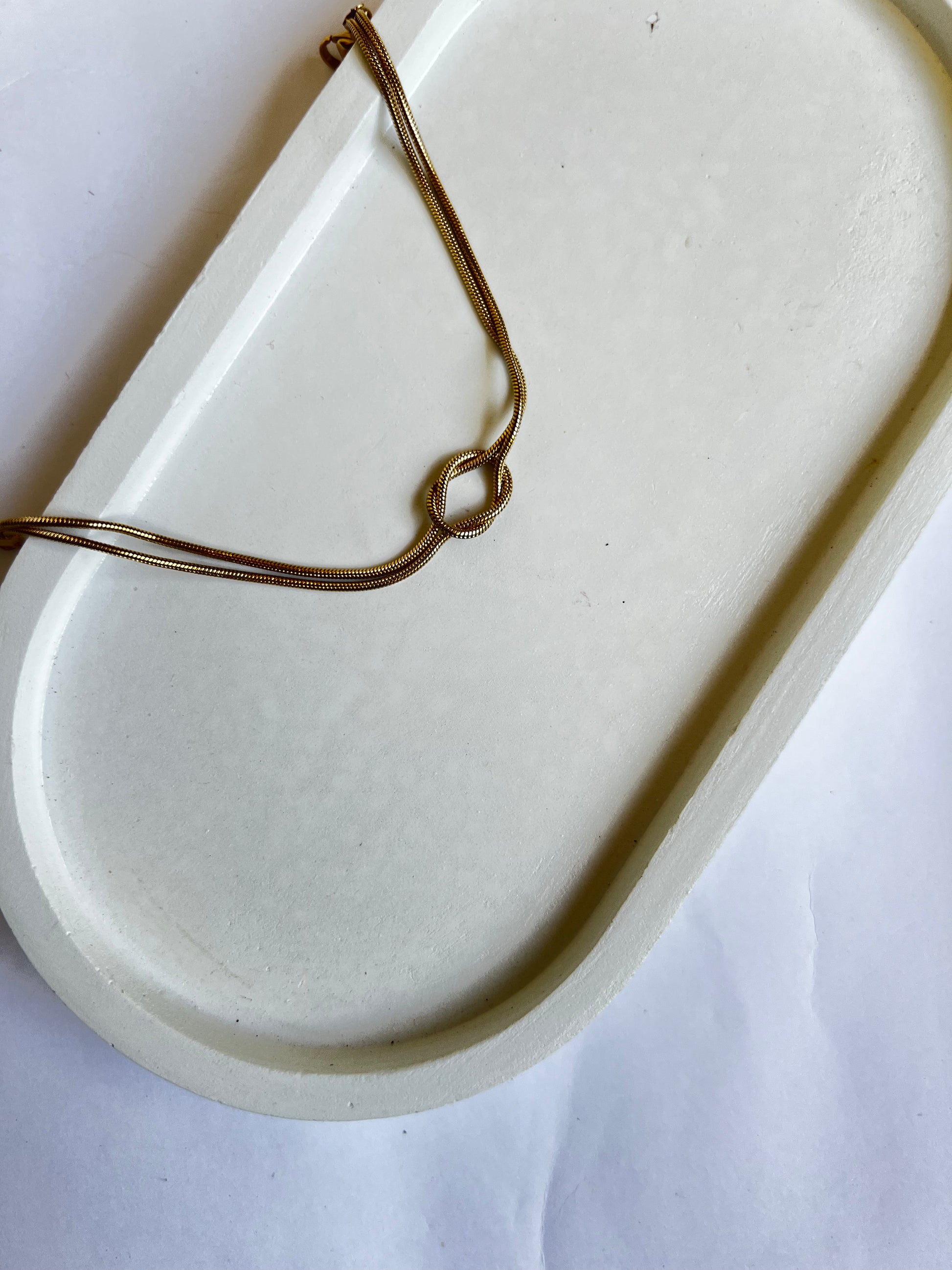 The sleek snake-chain paired with the subtle knot detail brings a modern, minimal aesthetic perfect for everyday wear.